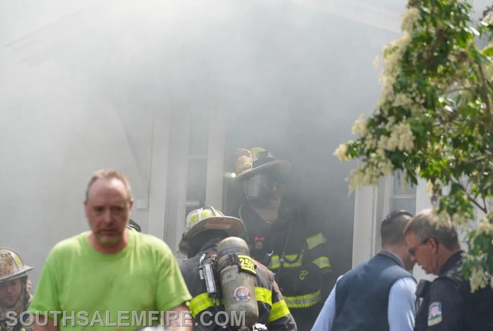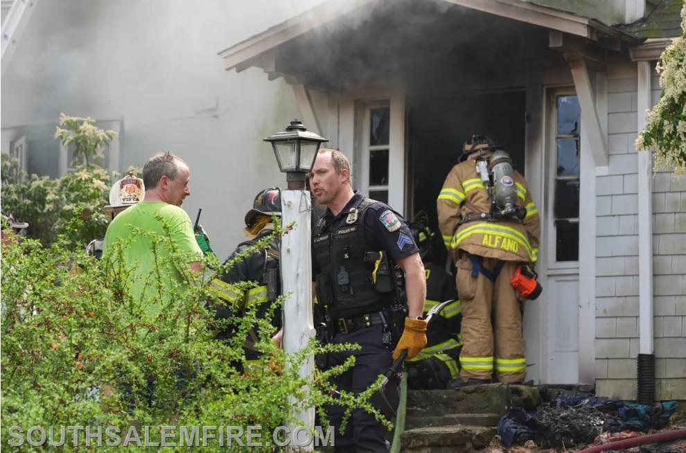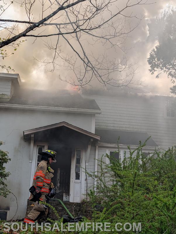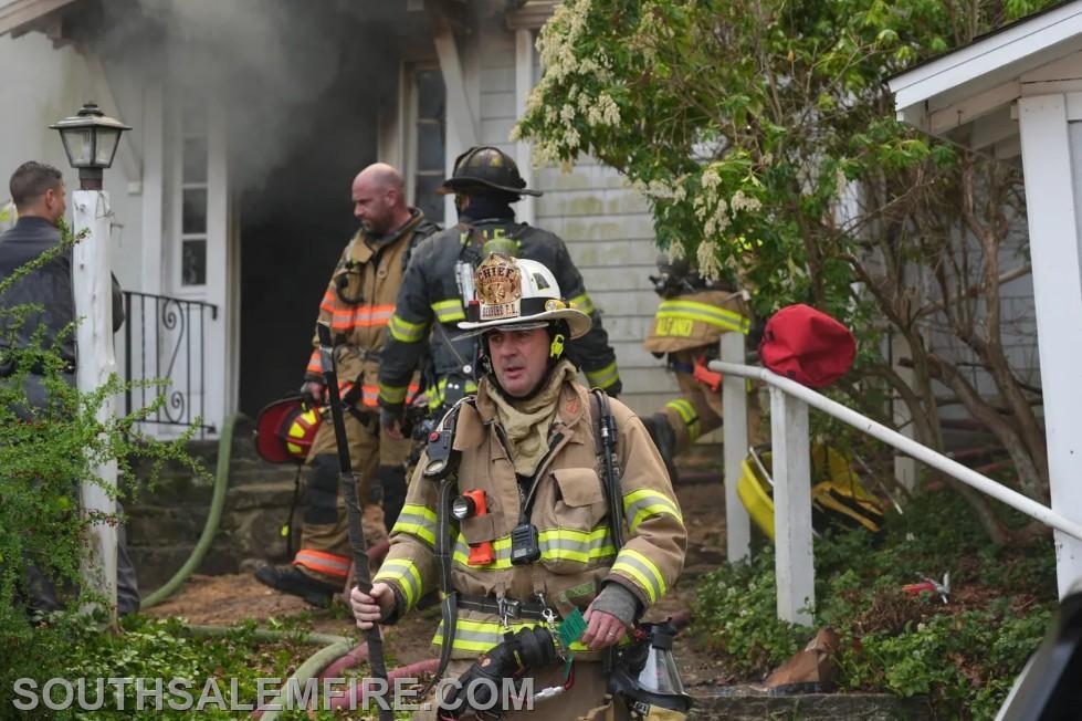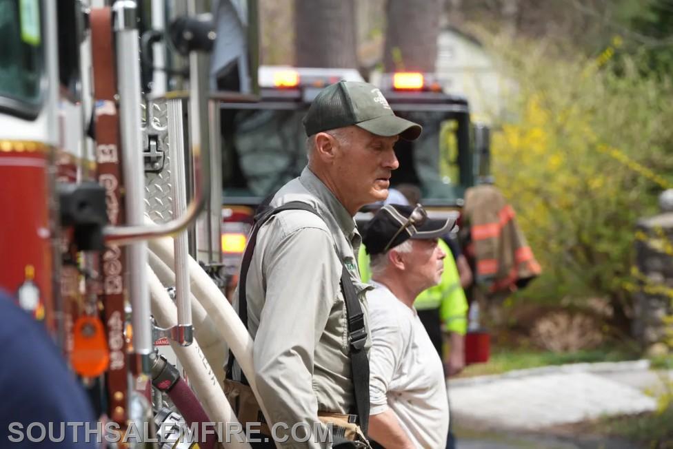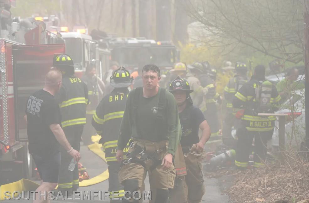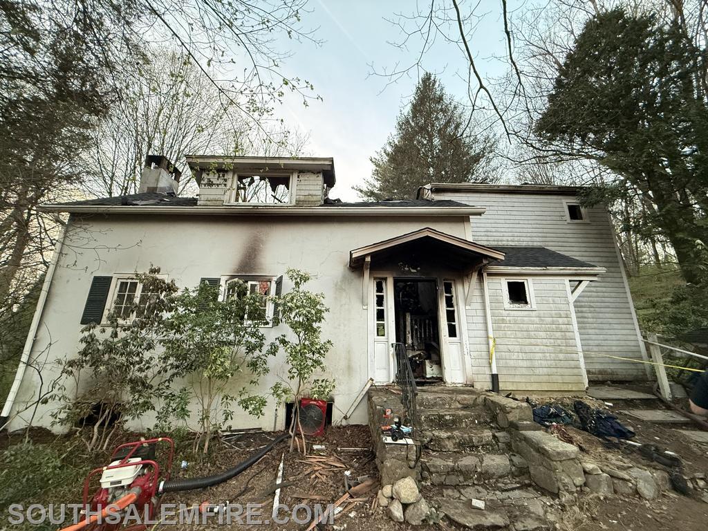 In the middle of the workday at 12:50 hrs on Thursday, April 16th, the South Salem Fire Department was dispatched to 27 Old Shop Rd for a reported structure fire with occupants trapped in the residence. C2454 responded within minutes down NY-35 and reported to county dispatch “60-Control” that a column of smoke was seen from the area and to transmit the working fire (10-75). Upon arrival, Westchester County PD (SRO Brett Schlosser), Lewisboro PD (Sgt. Llewellyn) and SSFD members attempted initial emergency searches within the front entrance and basement of the residence in an attempt to extricate trapped residents just before the inside experienced combined flashover and smoke explosion.
